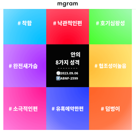 심리테스트 많이 하시죠. mbti를 분석하려고도 많이하는데 무료성격진단이라기엔 고퀄리티인 전문적인 테스트 소개합니다. 몇년전부터 알려져서 이미 700만명 이상이 사용한 mgram이란 일본에서 만든 사이트인데요. 한국어버젼이에요.