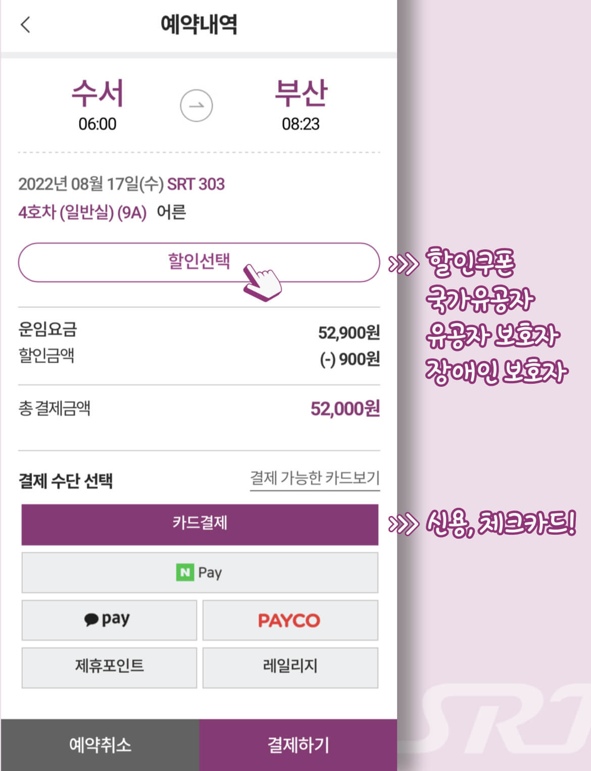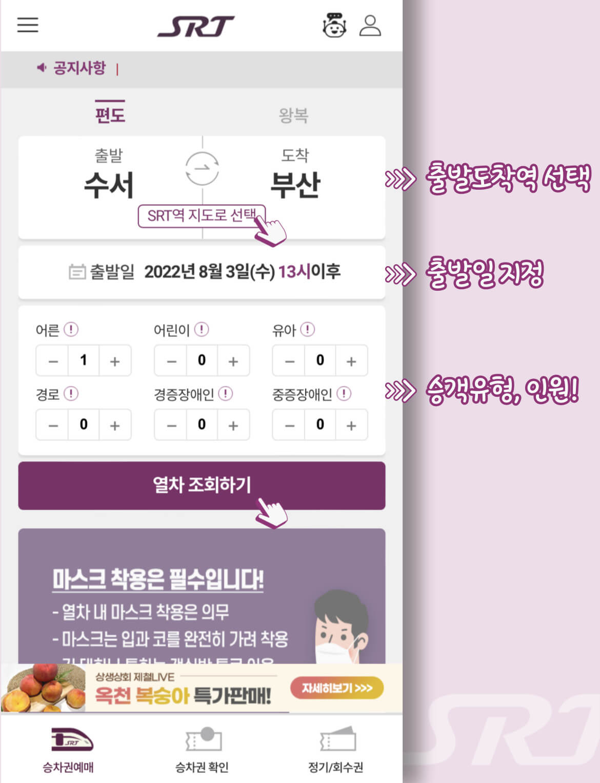 SRT앱으로 예약하기